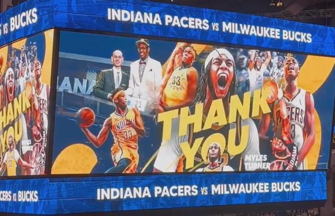 比赛开始前,步行者播放了官方制作的致敬视频,其中满是特纳在步行者效力期间的精彩镜头。